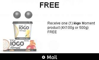 Deal is over. iögo厂家活动,只需通过websaver在线订购iögo优惠券,即可在数天内收到免费寄送的优惠券,可用来购买iögo Moment酸奶4x100g或500g包装的产品,点击进入订购页面