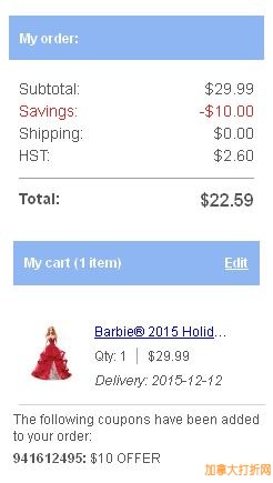 Sears网店销售,原价:49.99元,现价:29.99元,使用折扣码:941612495 后降为19.99元,运费7.95元,选择店内取货免邮。点击进入订购页面