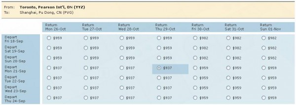 加航全球机票9折特卖,多伦多往返北京878元,往返上海937元起