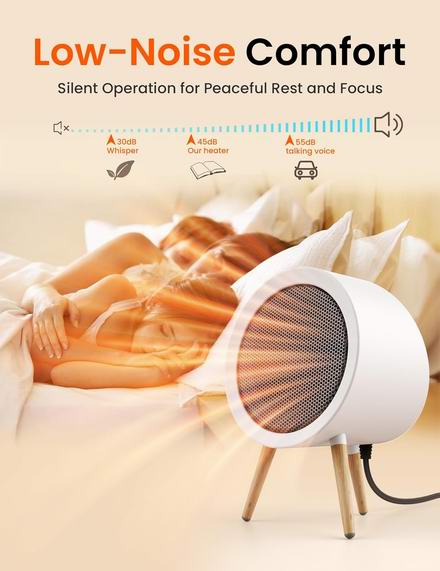 这款电暖器的设计灵感源自经典的中世纪美学,采用暖白色机身搭配可拆卸的木质三脚架它不仅能为您带来温暖舒适,还能成为您卧室、办公室或客厅的时尚装饰品。采用PTC陶瓷加热元件,仅需2秒即可快速升温至60°C,在提供快速、稳定温暖的同时,还能有效降低能耗。三种模式,四季皆宜,提供 1000W 高功率加热、600W 低功率加热和 10W 风扇模式。具有四重安全防护功能,包括过热保护、45°倾倒自动断电、V0 级阻燃材料以及独立的开/关安全开关。