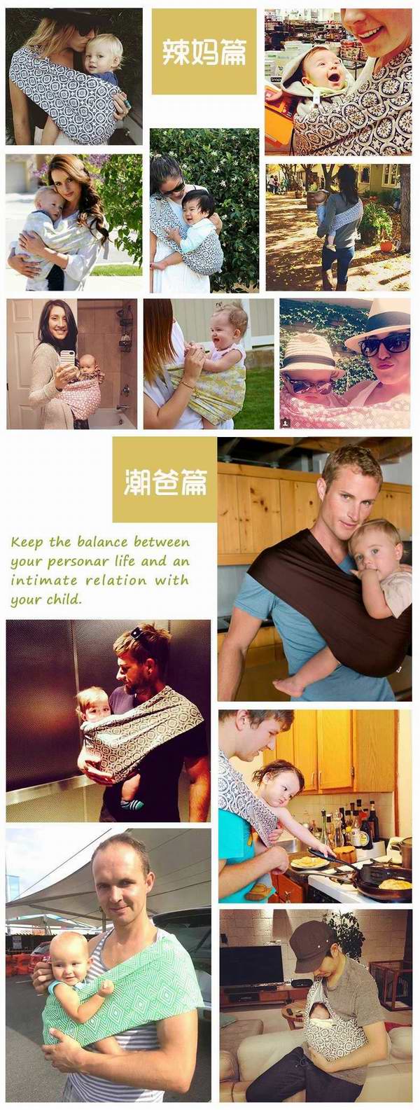 极简设计理念,超简单易用,纯天然棉质,独特弹性面料,呵护宝贝幼嫩肌肤,是市面舒适度一流的婴儿背巾。一件背巾三种背法,可调节适应各种体型宝宝舒适又安心。多款图案可供选择,让您和宝宝成为时尚焦点。适合初生婴儿到学步幼儿,袋鼠式育儿法的理想工具。