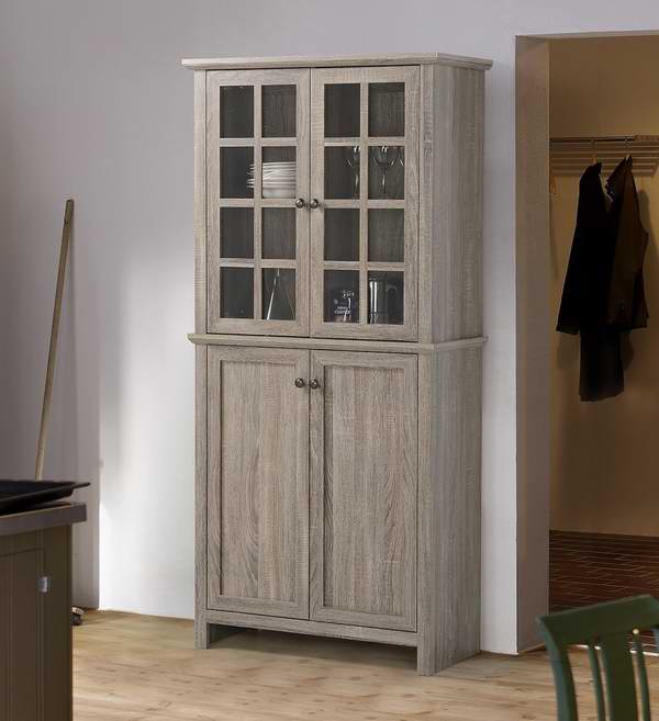 共有8个独立的储格,4扇柜门,上面两扇嵌入钢化玻璃,美观大方,适合放置于厨房、餐厅、浴室或客厅使用。尺寸为:85.1 x 39 x 180.1 cm