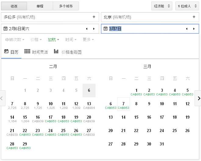 订购加航1月13日-28日、2月7日-11日出发,1月18日-4月26日、4月30日-5月11日回程的机票享受特价优惠,多伦多往返北京853元,往返上海969元,温哥华往返北京727元,往返上海748元。点击进入订购页面。