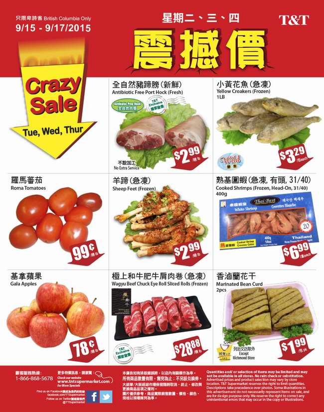 大统华超市本周特卖震撼价(9.15-9.17 安省、渥太华、卑诗省)