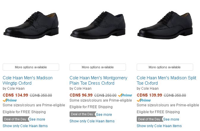 Amazon网店销售,精选3款 Cole Haan 男士经典款时尚皮鞋3.8折限时特卖并包邮,点击进入订购页面