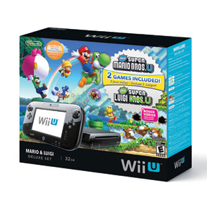Kick-start your Wii U gaming collection with the 32GB Mario & Luigi Deluxe Set! Featuring a 32GB Wii U console in black, this bundle also includes New Super Mario Bros. U and New Super Luigi U for hours of fun with the Mushroom Kingdom's favourite plumbers. Enjoy all-new ways to play with the GamePad controller's built-in touchscreen, and connect with other Nintendo fans around the world with the Miiverse online community.