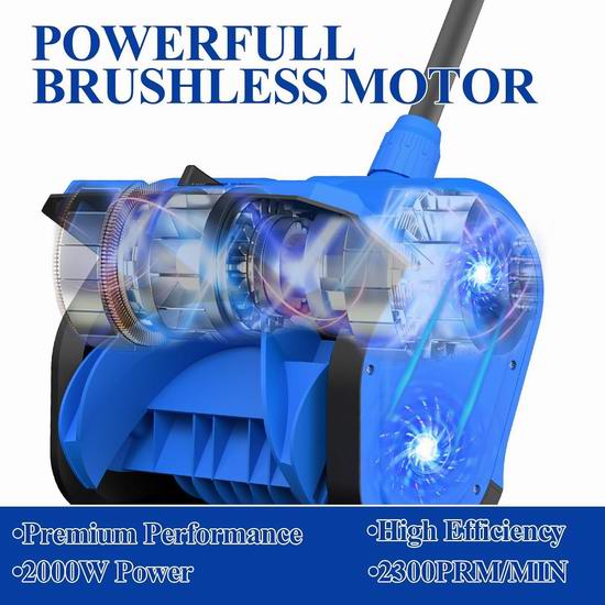 这款无绳抛雪机搭载强劲的 1200W 无刷电机,本品不含电池,兼容DeWALT 18V 和 20V 电​​池,可铲除宽度10英寸,厚度6英寸深的积雪。铲雪机动力强劲,每分钟可轻松铲除超过300磅的积雪,最大抛雪距离可达20英尺。铲雪机仅重10磅,符合人体工程学设计,具有可调节的弧形手柄和伸缩杆,让您无需弯腰即可清除积雪,保护背部,比手动铲雪更省力,减轻手臂和肩膀的负担。