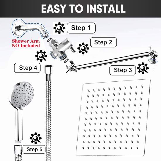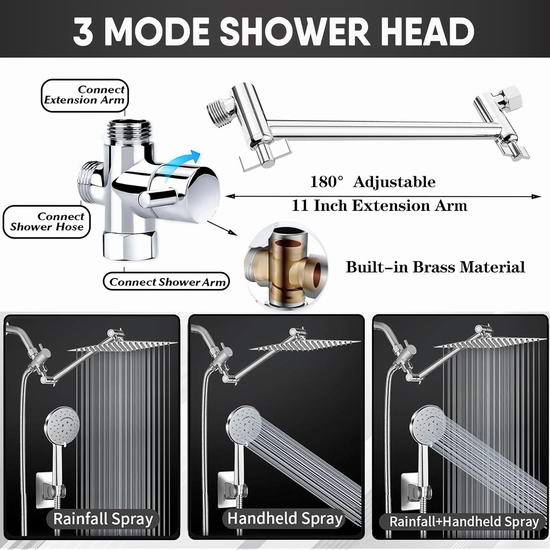 历史新低!GIFTQOOL 双喷头 10英寸不锈钢淋浴头花洒5折 54.99加元包邮!2色可选!