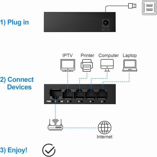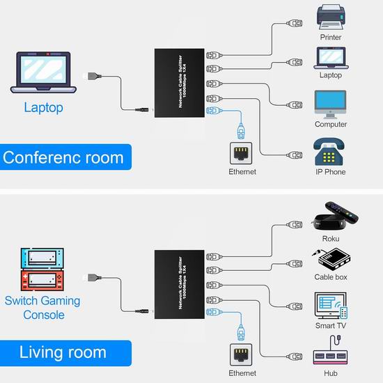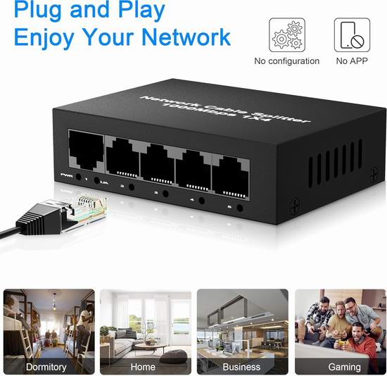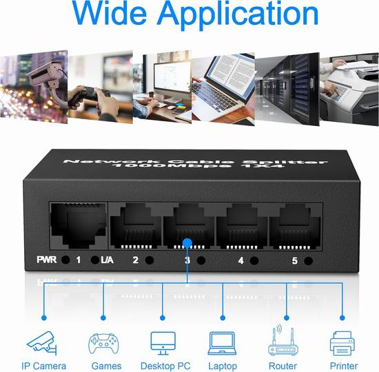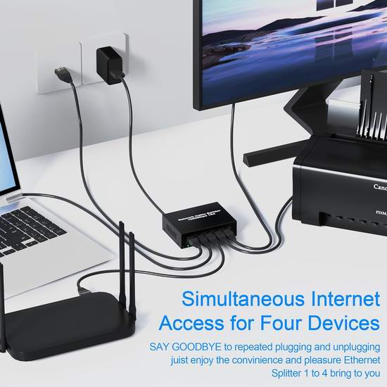 这款RJ45以太网分线适配器,即插即用,可将一根网线分成四个输出端口,每组网线速度可达1000Mbps,两组网线信号传输互不干扰。让您流畅观看高清视频、畅玩在线游戏、下载大型文件,告别卡顿和延迟,享受流畅的网络体验案。
