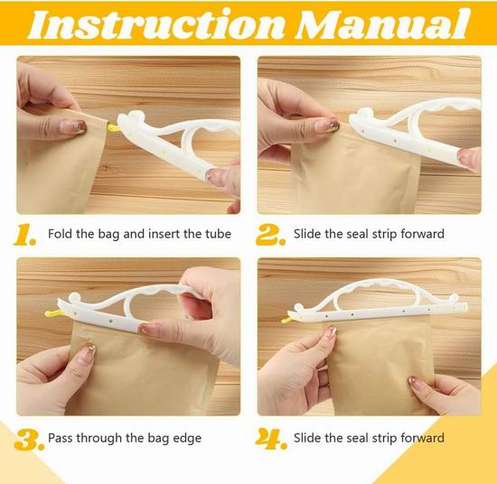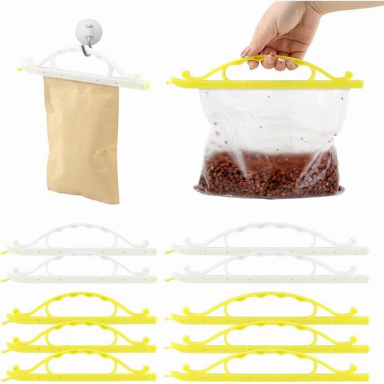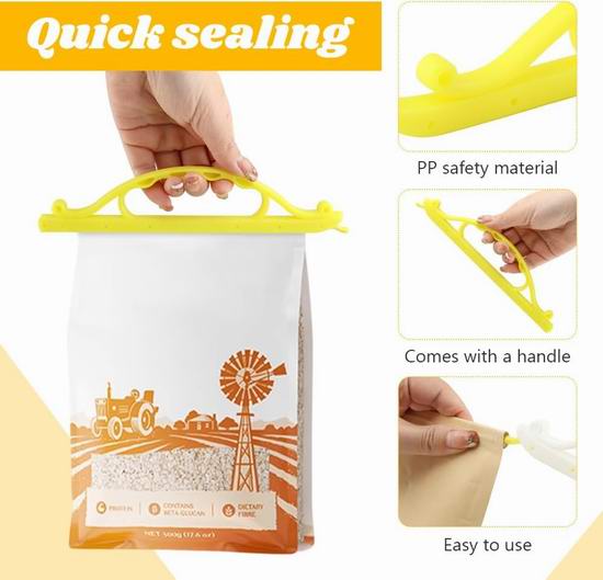 套装包含2种尺寸,共10个封口夹,小号:21.5*4.7厘米,中号:28.5*4.7厘米。封口夹采用塑料材质,可重复使用。使用时,折叠包装袋,将密封杆从一端滑到另一端即可牢固密封。手持式设计,方便悬挂在挂钩上或收纳在橱柜中,节省厨房空间。