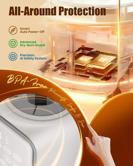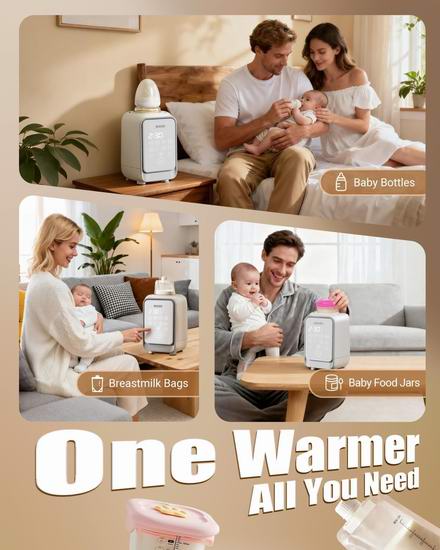 温奶器采用24小时恒温加热和轻柔的每小时旋转功能,让奶瓶保持温暖。柔和的夜灯如同您忠实的伴侣,为您营造宁静的夜晚,随时满足宝宝的温奶需求。适用于所有尺寸(2盎司至8盎司)和材质的奶瓶,包括玻璃、硅胶、塑料等,甚至适用于所有配方奶。还能轻松加热母乳储奶袋和辅食容器。