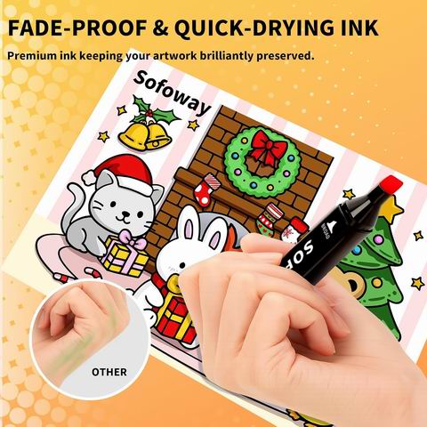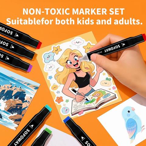 专为成人绘画、素描和插画设计,采用优质酒精墨水,可实现无缝混色、叠色且速干防褪色。套装内含120种鲜艳色彩,并配有便于携带和收纳的耐用便携盒与笔架。马克笔为双头设计(宽扁头与细子弹头),适合粗线条与细节刻画,笔帽带有颜色编码且密封性好,防止墨水干涸。