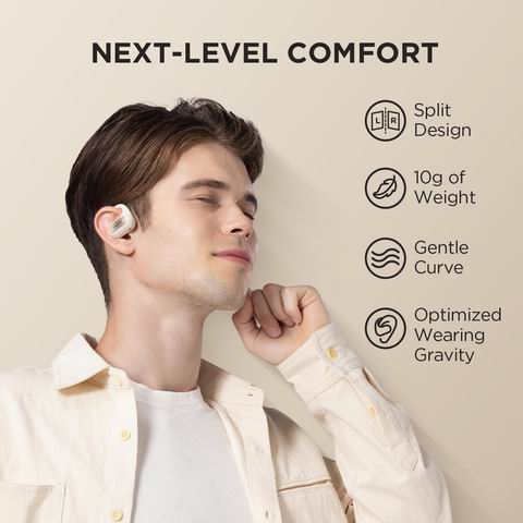 专为运动设计,搭载 14.2 毫米 DLC 动圈单元与 DBB 低音增强算法,呈现强劲节拍与沉浸音效。采用 Bluetooth 5.3 技术,连接稳定、低延迟;配合 4 麦克风 AI 算法,通话清晰自然。单次充电可连续播放 10 小时,搭配充电盒总续航达 30 小时。符合人体工学的耳挂式开放设计佩戴稳固舒适,运动时不压耳;具 IPX5 防水等级,有效防汗防雨,适合健身、跑步及日常通勤使用。