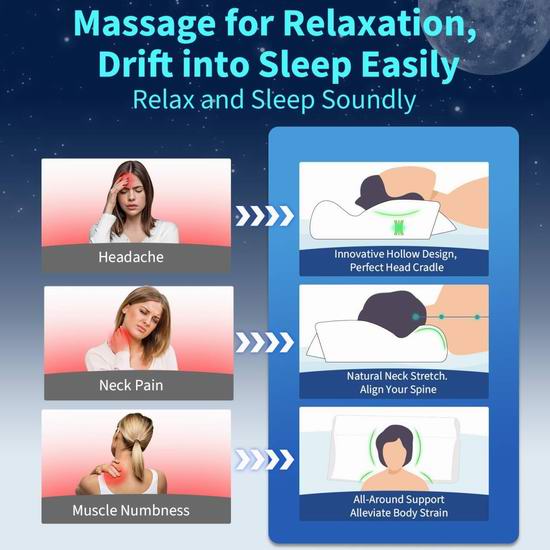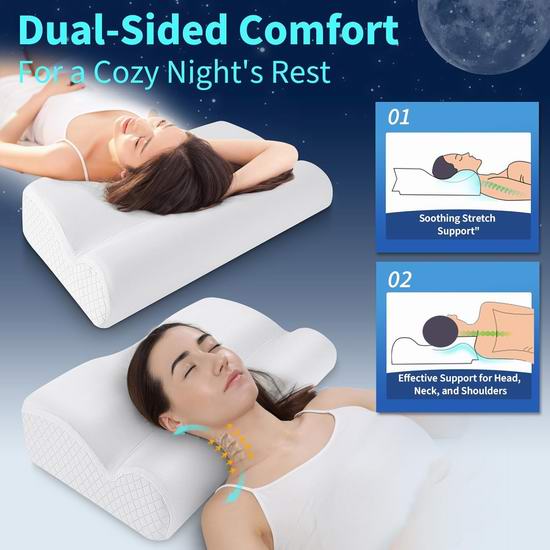 采用独特的二合一设计,具有贴合颈部的托架和圆柱形颈枕,与标准枕头相比,颈部和肩部不适感可减轻高达5倍。符合人体工学的轮廓可正确调整脊柱,同时缓解压力点,帮助消除晨僵和影响睡眠和日常活动的慢性疼痛。采用高密度记忆海绵填充,贴合头部和颈部,同时保持完美支撑,提供始终如一的舒适感和精准的贴合度。