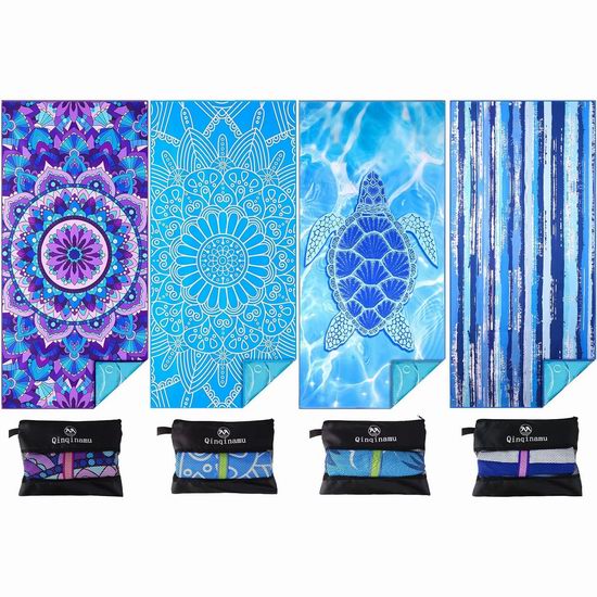 历史新低!Qinqinamu 双面印花 超强吸水 超大轻质沙滩巾2/4/6件套6.7折 26.99-66.49加元!多款可选!