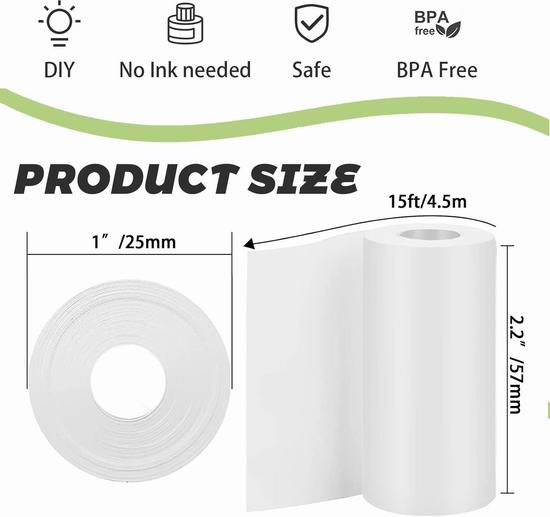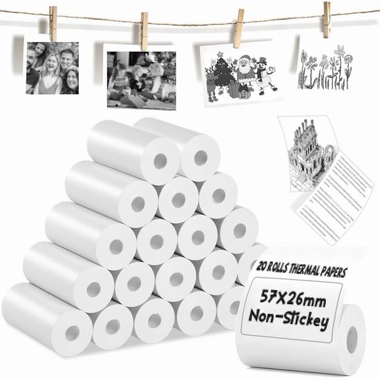 采用不含BPA、安全无毒的纸张,无论有儿童或宠物,都可以放心使用。纸卷可兼容几乎所有迷你热敏打印机,使用热敏纸进行热敏打印,无需担心墨水污渍。纸卷小巧便携,可轻松放入包中,方便取用。共20卷,每卷长3.5米,宽57毫米。保质期3年。