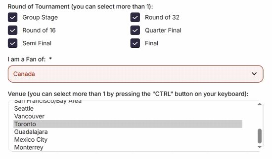 ● 每人可申请多个场次的门票,可选择所有104场比赛的门票,以及特定球队或特定场馆的套票。