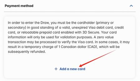 10、绑定Visa卡验证身份,点击“Add a new card”,添加你的Visa信用卡或Visa借记卡信息;
