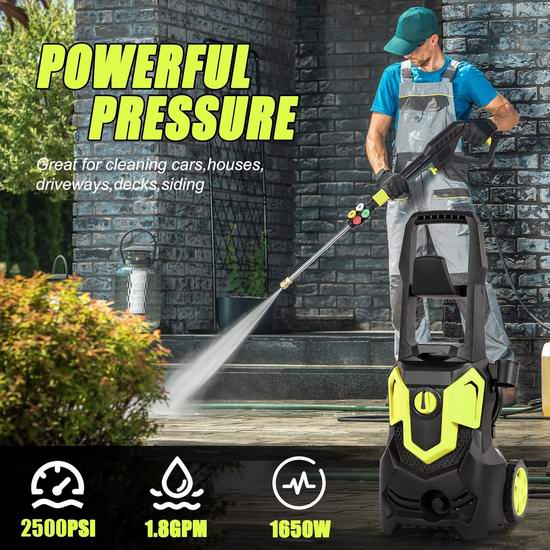 历史新低!Fazil 2500PSI 1.8GPM 电动高压清洗机4.3折 60.74加元包邮!