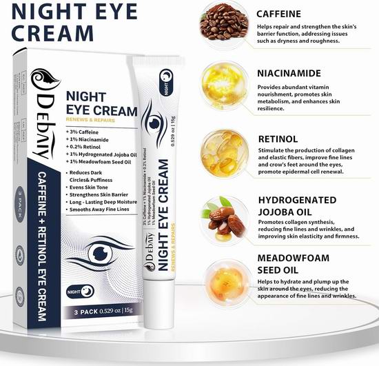 白菜价!历史新低!DEBAIY 3%咖啡因 夜间修护眼霜3件套2.3折 11.25加元包邮!改善黑眼圈、眼袋和浮肿!