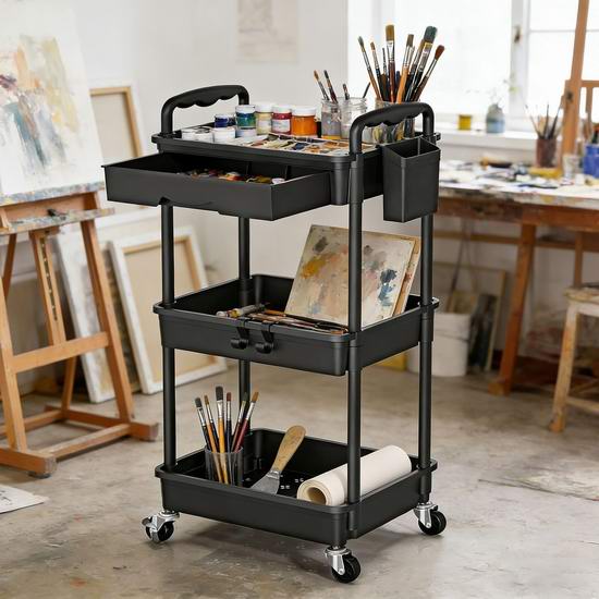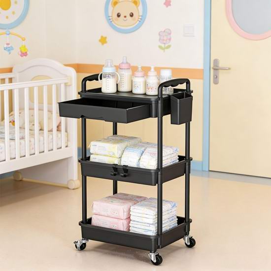 历史新低!SUNALLY 可移动 带抽屉 三层储物推车 27.99加元包邮!