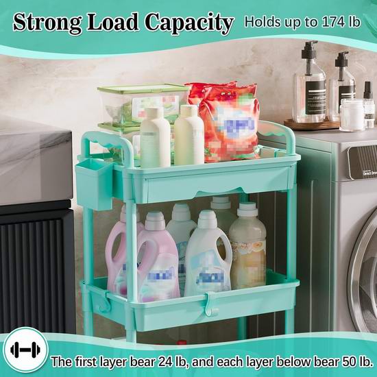 历史新低!SUNALLY 可移动 带抽屉 三层储物推车 27.99加元包邮!5色可选!