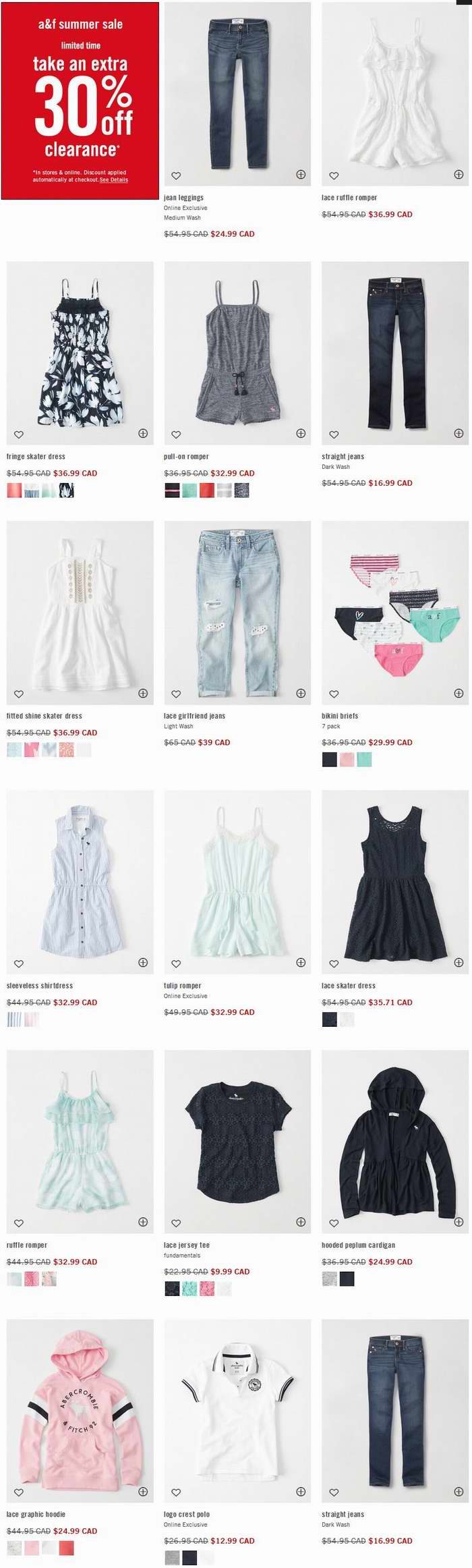 Abercrombie & Fitch网店销售,清仓区童装3折起,额外再打7折,满75加元包邮,点击进入订购页面