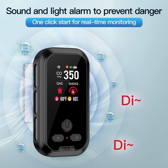历史新低!Gedsffati 5合1 一氧化碳+烟雾+燃气+温湿度探测报警器5.8折 31.79加元包邮!