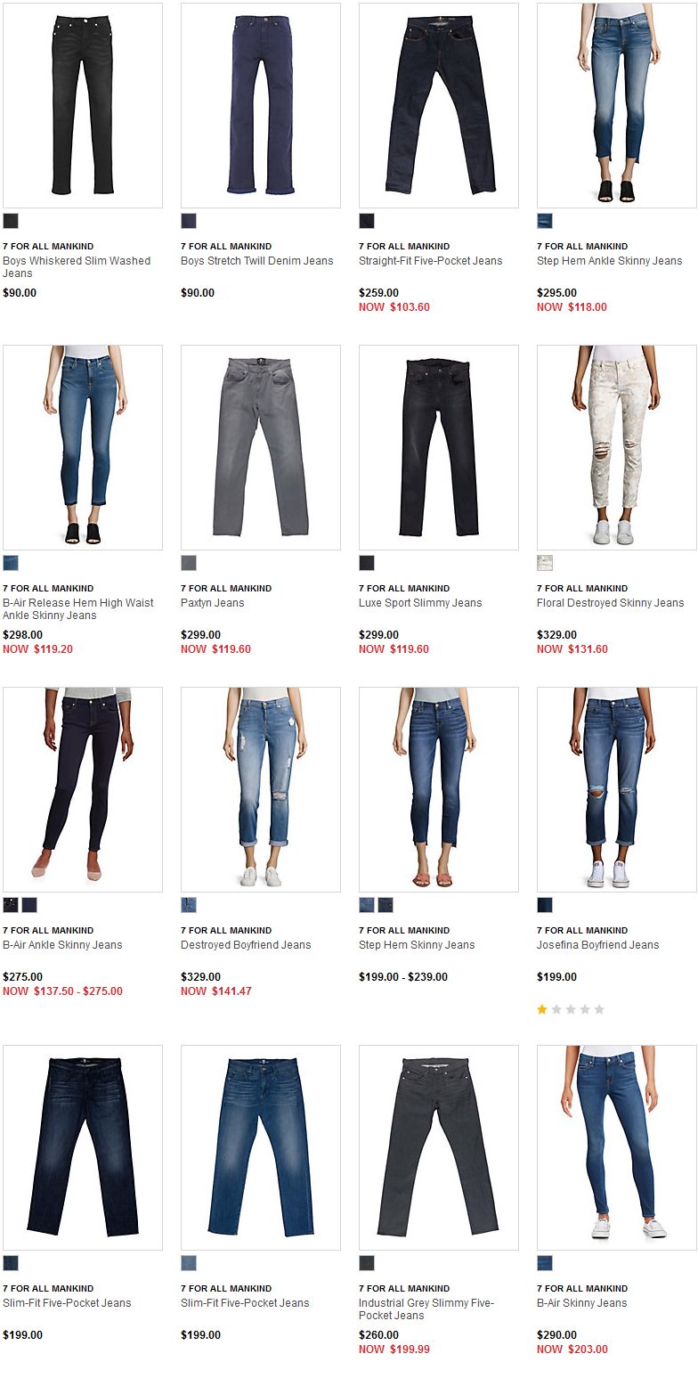 The Bay网店销售,精选 7 FOR ALL MANKIND 2017秋季男女儿童服饰,牛仔裤 15.2加元起,使用折扣码:VIP 额外再打7.5折,满99加元包邮。点击进入订购页面。