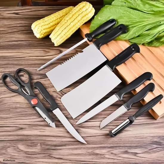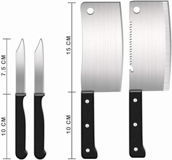 采用高品质不锈钢材质,具有出色的锋利度、耐腐蚀性和耐用性,防污防腐蚀。套装包含中式厨师刀、切肉刀、多用途刀、厨房剪刀、磨刀器和削皮器,满足所有食物处理需求。可放入洗碗机清洗。