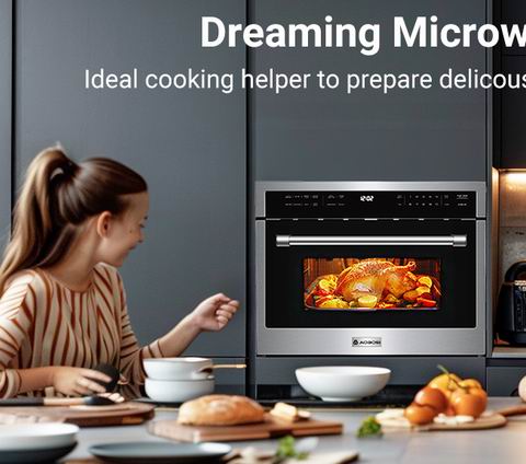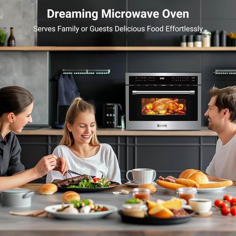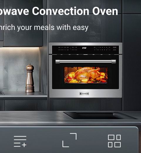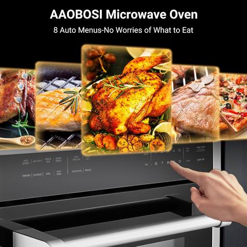 AAOBOSI 24 英寸嵌入式微波炉空气炸锅一体机拥有 1.6 立方英尺大容量1000W 微波+1750W 烧烤+1700W 对流 多重加热系统,支持 12 种烹饪模式(空气炸、自动感应烹饪/加热、爆米花、披萨、解冻、对流、烧烤等),通过自动菜单一键即可完成烹饪。其 0.9:1 精准温控、11 档功率调节与 LED 内照明 带来更直观的烹饪体验,下拉式不锈钢炉门和金属内腔易清洁、更耐用。搭配 旋转托盘、陶瓷托盘、可拆卸烤架、烤盘与金属网架,进一步扩展烹饪方式。内置 儿童锁、定时器 与对流 360° 热风系统让烹饪更安全又高效,是家庭与商用厨房的多功能高性能选择。