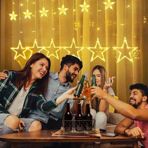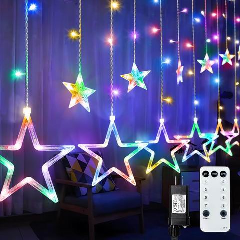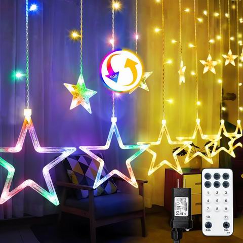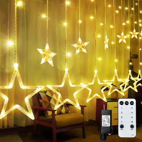 ACAN 星星窗帘灯配有138颗LED灯珠与12颗星形装饰(6大6小),散发暖白光,营造梦幻浪漫氛围。具备IP65防水等级和UL认证,安全可触,适合室内外窗户、卧室、婚礼及节日装饰。支持遥控控制,提供8种闪烁模式,满足多种场景需求。灯串线材透明,美观易搭配,附3米电源线,既是圣诞礼物,也可全年点亮庭院与露台。