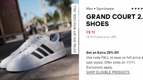 折扣升级!adidas Grand Court 2.0 经典三条杠 男女同款运动鞋3.7折 33.6-41加元包邮!