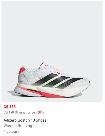 白菜价!Adidas 女式 Adizero Boston 10 跑鞋 45.3加元(官网原价 190加元,7.5码)