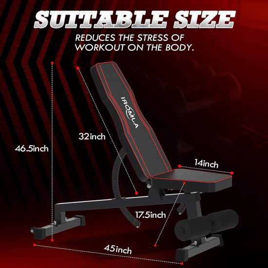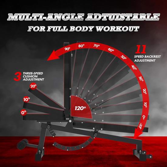 这款健身凳采用商用级材料制成,钢管厚度是标准型号的1.5倍,搭配75x75x3毫米商用级方形钢材和三角形稳定结构,可承重高达1200磅。拥有11个靠背角度和3个座椅角度,采用弹性弹簧锁,可快速调节90°至-10°之间的角度。能完美适应胸部、肩部、背部、腹部等全身哑铃训练。采用防水PU皮革和5层高密度海绵包裹,加厚加宽的靠背和座椅提供强力支撑。适合长时间哑铃训练,有效缓解肌肉酸痛和疲劳。防水表面易于擦拭清洁,即使出汗后也能保持干爽。采用符合人体工学的靠背设计,加厚、加长、加宽,适合不同身高和体型的用户。