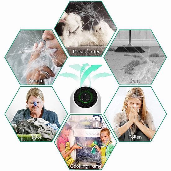 此款空气净化器通过CE/FCC/RoHS/ETL/GS认证,采用比True HEPA更高过滤等级的HEPA-H13三级过滤器(预过滤,活性炭过滤,HEPA过滤),四面环形进风设计,半小时可净化40平方米空间,1小时可净化80平方米空间,支持2/4/8小时定时关闭。24分贝低噪音运行,CADR额定值为100m³/h,有效去除99. 97%的空气微粒,小至0.1微米,智能提醒更换滤网(指示灯闪烁),3档风扇速度可选,全方位清洁空气,包括过敏原、烟雾、花粉、异味、灰尘、烟气,为您提供清洁健康的环境。
