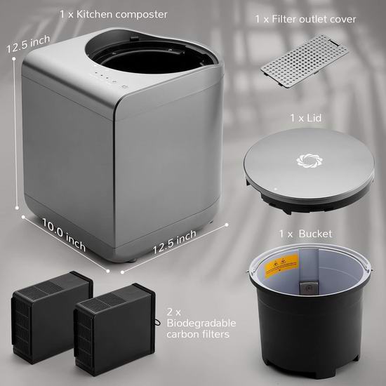 这款食物堆肥机通过干燥和研磨,将食物残渣和厨房垃圾转化为粉末。您可以将这种粉末用作植物肥料,也可以将其丢弃,以减少垃圾的体积和气味。内置SHARKSDEN 三重刀片锋利如鲨鱼牙齿,配合将食物残渣推入刀片的搅拌机,它可以从多个方向粉碎大量食物。容量2.5升,一键操作,只需轻轻一按,即可同时处理多种不同类型的垃圾。桶身采用铸铝材质,易于清洁,并可用洗碗机清洗。可生物降解的活性炭过滤器能够有效减少异味,并有助于在两次堆肥循环之间防止异味产生。