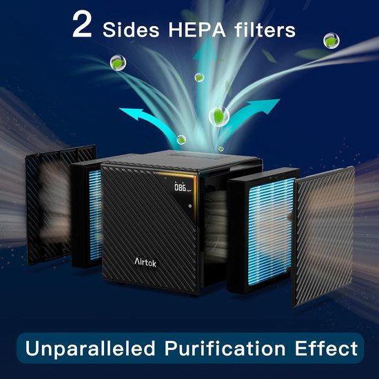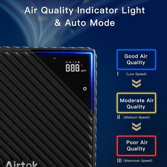 采用真正的 H13 HEPA 空气过滤器,采用双面进风口设计,配备2个HEPA过滤网,外形紧凑,但动力强劲,每小时可净化779平方英尺(76平方米)房间内的空气,可过滤 99.97% 的 0.3 微米颗粒的灰尘、异味、皮屑、花粉尘和烟雾。搭载空气质量传感器,可通过指示灯显示空气质量情况。4种风速选择,具有自动运行模式,根据当前空气质量自动调节净化风速。睡眠模式时运行噪音低至25分贝,不会打扰睡眠、工作或学习。