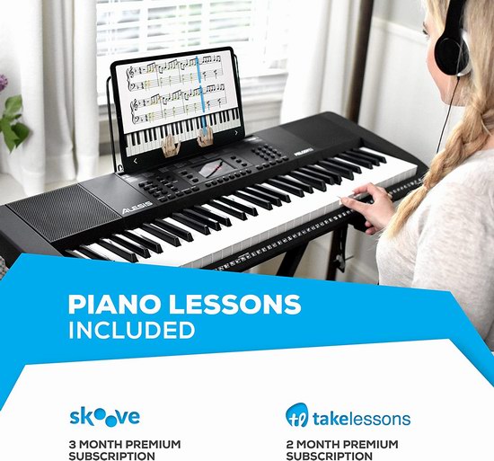 本款电子琴有61标准钢琴键,LCD屏幕显示,300种音色,300种节奏,40首示范乐曲,具有录音和播放功能,送3个月Skoove Premium在线钢琴课程。配备琴架、琴凳和耳机。