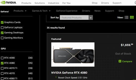 其中显卡NVIDIA GeForce RTX 4080目前售价1659.99加元: