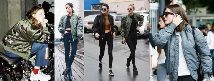 自从超人气好莱坞IT GIRL金小妹和GIGI HADID同时穿飞行员夹克出街后,这股帅气的BOMBER JACKET风潮就愈演愈烈了。孙娘娘在《奔跑吧兄弟》里也有穿哦!经典款的飞行服备受潮人的喜爱。事实上,飞行服十分抢眼。与朋友聚会时,只随意搭配,也是绝对的时髦。