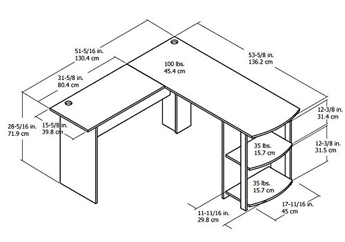 外形简洁时尚,桌面空间巨大,侧桌设有两层书架可以堆放书籍或杂物,外形尺寸为 136.2 x 130.3 x 71.8厘米。