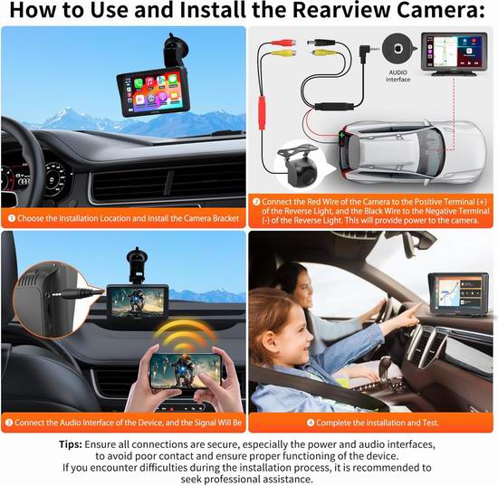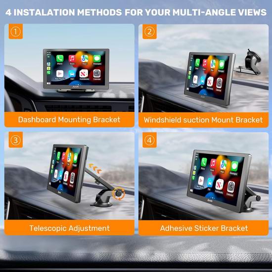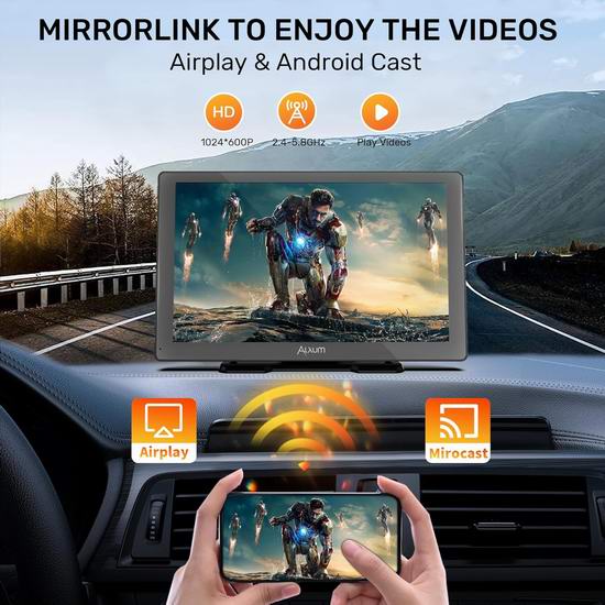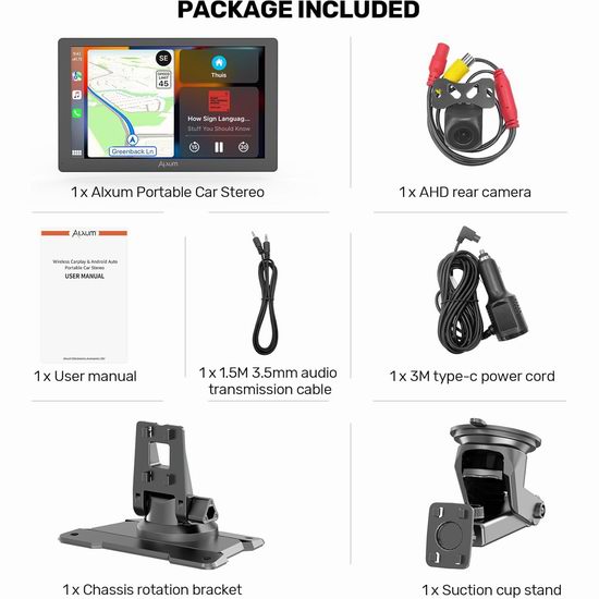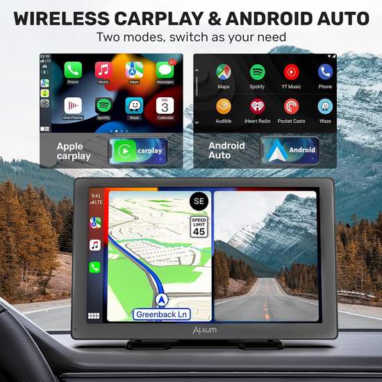 通过蓝牙或WiFi轻松将iPhone或安卓手机连接到车载系统,即可享受无线 CarPlay 和 Android Auto 功能,即时访问手机中的音乐、地图、信息和通话。支持通过 Siri、Google Assistant 或手机的智能助手进行语音控制。发送信息、获取路线、播放音乐和拨打免提电话,所有操作均无需将手从方向盘上移开。9英寸高清触摸屏为您的媒体播放和导航带来惊艳的视觉体验。配备防水720P倒车摄像头,当您挂入倒挡时自动启动,为您提供车后广角视野。支持 Mirror Link 功能,可轻松将智能手机屏幕镜像到车载显示屏上。驾驶时享受精准的实时 GPS 导航,并可轻松访问 YouTube、TikTok 等应用程序,观看视频和电影。配备可调节的粘性支架,安装简便。适用于大多数车型,无需专业安装,只需三分钟即可完成设置。