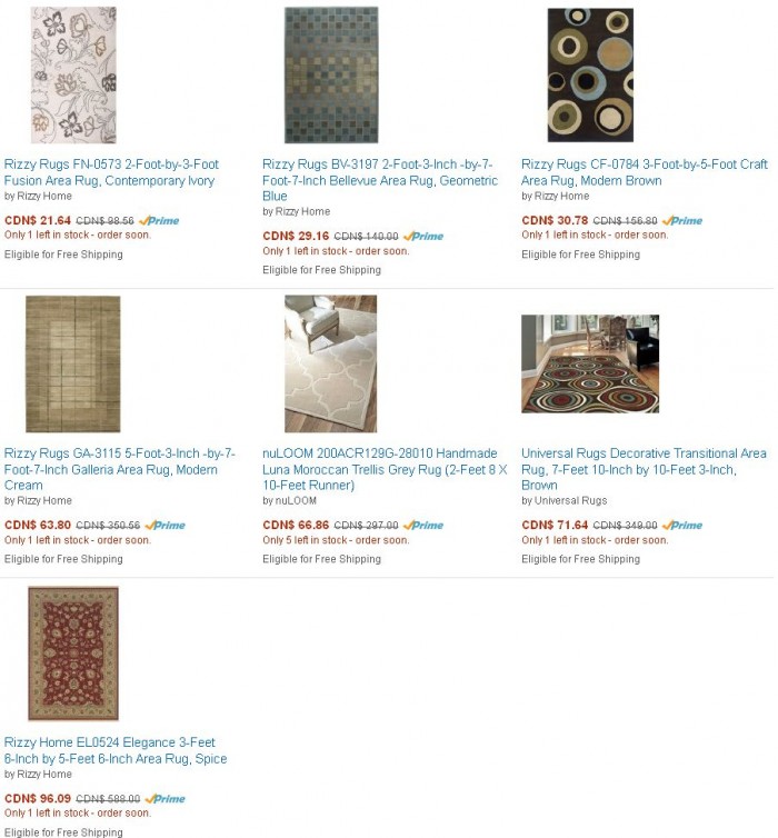 Amazon网店销售,多款地毯2折21.64元起清仓特卖!全站满25元包邮。点击进入订购页面
