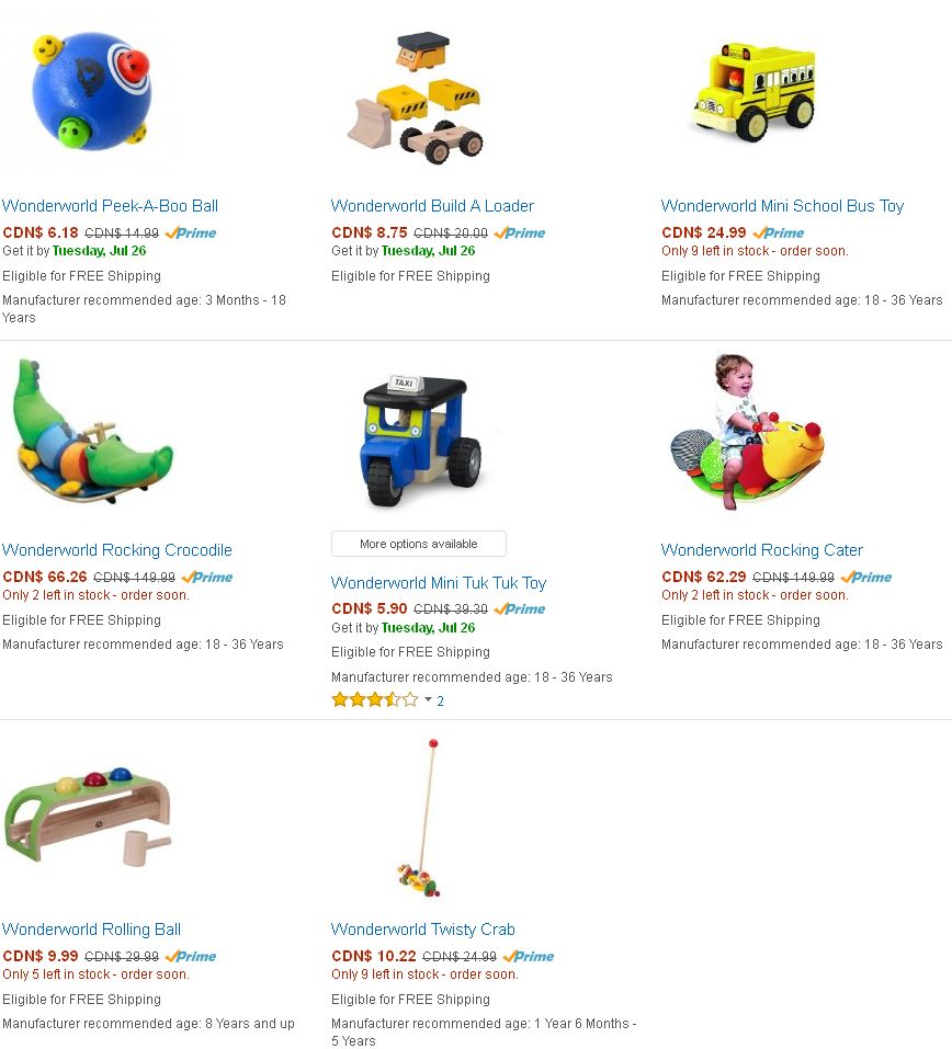 Amazon网店销售,精选8款 Wonderworld 幼儿玩具1.5折起限时特卖,全站满25元包邮,点击进入订购页面