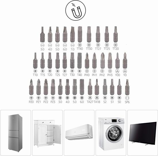 这款棘轮扳手和螺丝刀套装设计用于轻松拧紧和松开各种紧固件,配有精密无磁性螺丝刀头,适合修理手表、智能手机和眼镜等小型电子设备。磁性螺丝刀头则适用于维修空调、洗衣机、冰箱和电视等家电。该套装提供顺时针、逆时针和锁定三种驱动器设置,配有自由旋转底座,便于操作时保持一致的压力。工具由经过热处理的铬钒钢制成,具有耐腐蚀涂层,手柄防滑设计确保握持舒适。所有部件都整齐地存放在塑料储物盒中,方便携带和存储。