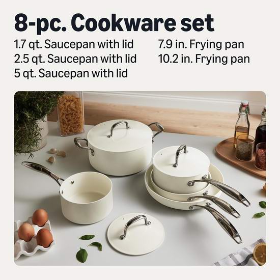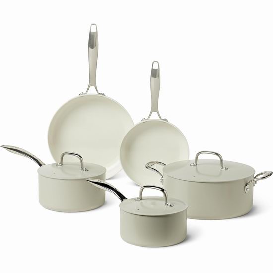 历史新低!Amazon Basics 陶瓷不粘底锅具8件套4.9折 60加元包邮!2色可选!