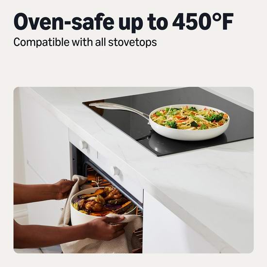 这款锅具采用陶瓷不粘底涂层,食物轻松脱落,易于清洗。不锈钢铆接手柄符合人体工学设计,提供更安全的烹饪体验,握感舒适牢固,且手柄始终保持凉爽。套装包含1.6升带盖汤锅、2.4升带盖汤锅、4.7升带盖汤锅、20.1厘米煎锅和25.9厘米煎锅。兼容包括电磁炉在内的所有炉头,可在232°C的烤箱中安全使用,可用洗碗机清洗,建议手洗延长使用寿命。
