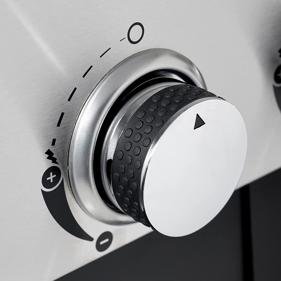 采用不锈钢外壳,陶瓷涂层铸铁炉排,内置温度计(测量范围122-800华氏度),4个炉头,带12,000-BTU边炉,主烹饪区590平方英寸,燃烧功率高达52,000 BTU,电子快速点火,烹调格栅易于清洁,前挡板可隐藏并保护丙烷气罐,底部设有滚轮方便推行。