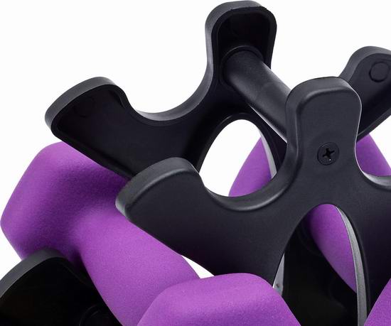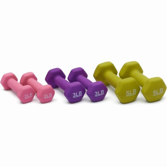 哑铃是一种简单、经济的健身器材,长期坚持练习哑铃,可以修饰肌肉线条,增加肌肉耐力,经常做重量偏大的哑铃练习,可以使肌肉结实,强壮肌纤维,增加肌力。这款哑铃套装包含6个哑铃,分为重量:2磅、3磅和5磅,附送收纳架。